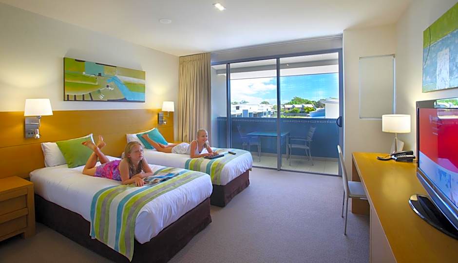 Self-contained apartments feature separate living area, unlimited internet and in-house movies, balconies, and spa bath.